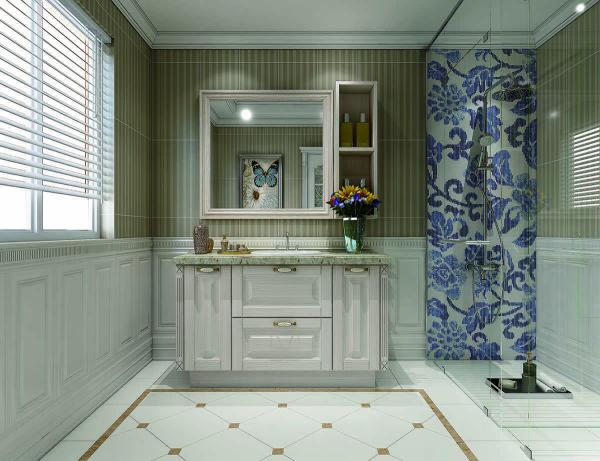 | Product Name | Elegant Classic Bathroom Vanity With Floral Tile And Mirror Cabinet |